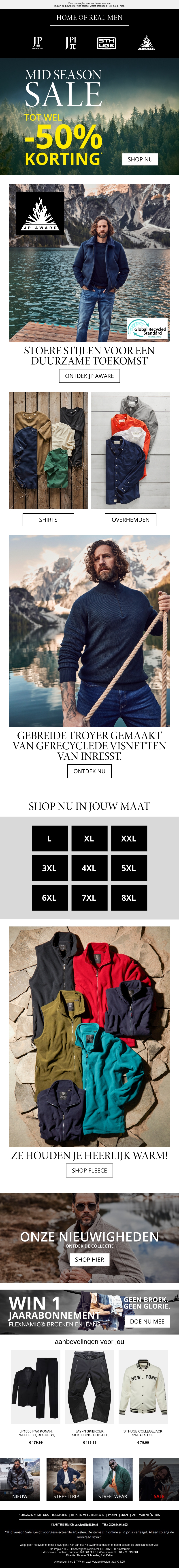 Mis deze kans niet om te shoppen tijdens de Mid Season Sale met kortingen tot 50%. Ontdek onze duurzame stijlen, gemaakt van gerecyclede materialen. Shop de nieuwste trends in jouw maat. Blijf warm en stijlvol in onze comfortabele truien en jassen. Bekijk nu onze nieuwste collectie en mis de aanbiedingen niet. Winkel online voor exclusieve deals.
