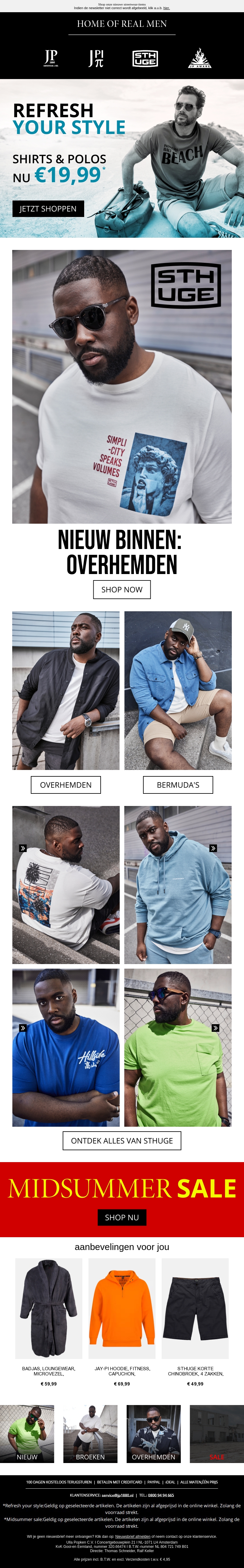 Vernieuw je stijl met onze nieuwste collectie T-shirts en poloshirts voor slechts €19,99. Ervaar comfort en mode met onze hoogwaardige kledingstukken. Bezoek onze Midsummer Sale voor nog meer aanbiedingen en ontdek de nieuwste hemden en bermuda's.