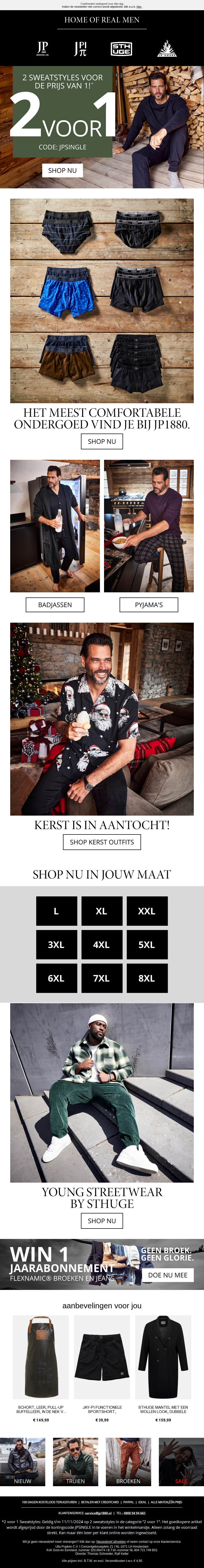 Geniet van het Singles Weekend met een speciale 2 voor 1 actie op sweatstyles. Upgrade je garderobe met comfortabele ondergoed, stijlvolle pyjama's, en meer. Vind je perfecte maat en bereid je voor op Kerst met de nieuwste collecties. Mis deze kans niet om jezelf te verwennen met topkwaliteit kleding.