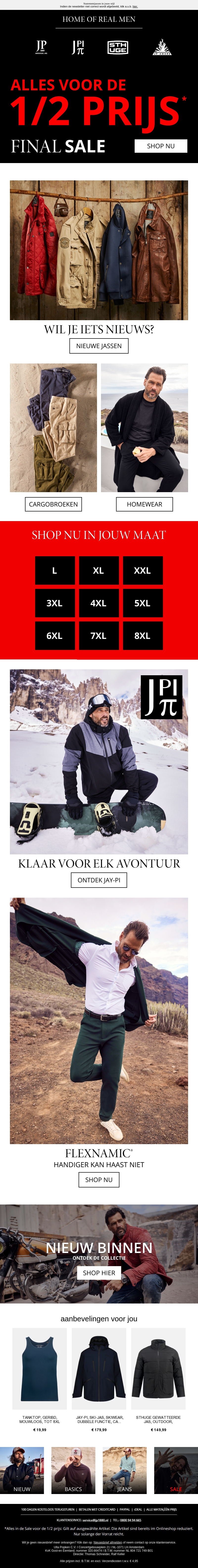 Sla je slag met de laatste fashion deals voor mannen! Alles voor de helft van de prijs in de finale sale. Ontdek nieuwe jassen, cargobroeken en homewear. Shop nu de maat die bij jou past en bereid je voor op elk avontuur. De collectie is net binnen, dus wees er snel bij voordat het te laat is.