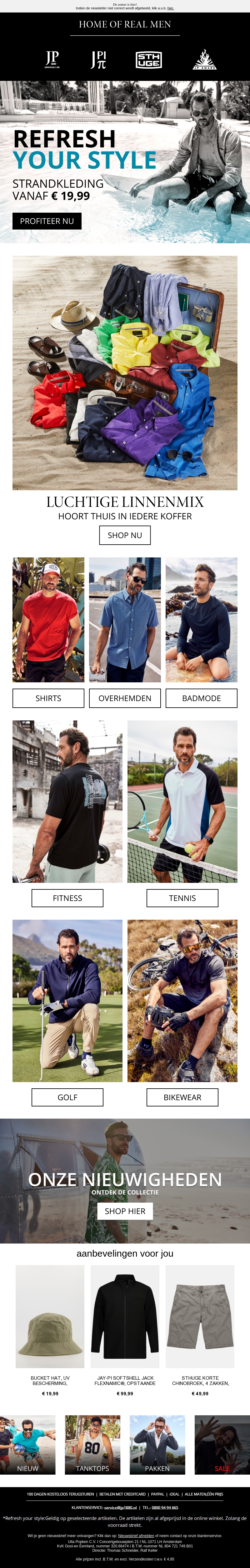 Verfrist je stijl met onze nieuwste strandkledingcollectie. Geniet van luchtige linnenmix en diverse mode-items zoals shirts, overhemden, badmode, en meer. Alleen vandaag vanaf €19,99!