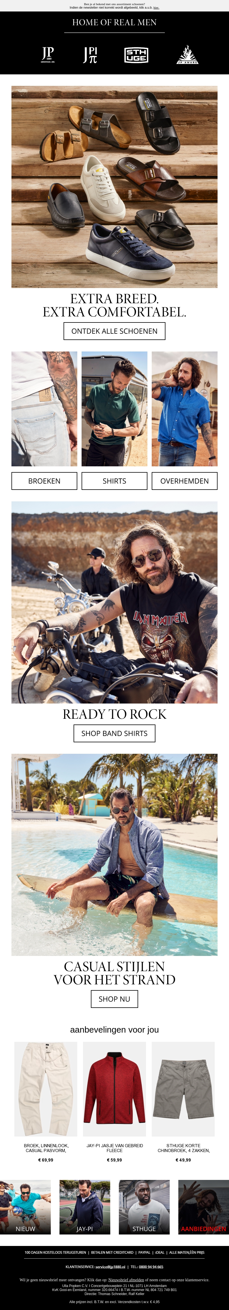 De zomer komt dichterbij en het is tijd om je zomercollectie bij te werken! Ontdek ons brede assortiment schoenen, shirts en broeken die perfect zijn voor het warme weer. Mis de kans niet op onze speciale aanbiedingen en bereid je voor op een stijlvolle zomer.
