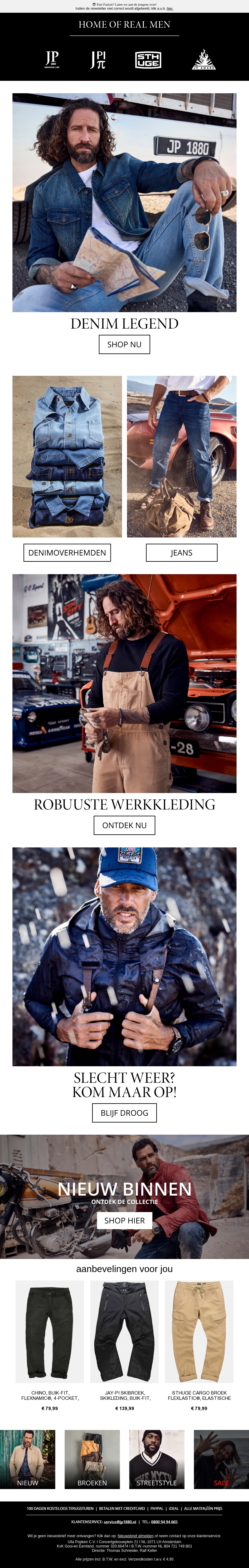 Duik in de wereld van JP1880's iconische denim stukken. Ideaal voor elke man die robuustheid met stijl wil combineren. Ontdek onze denimoverhemden, jeans en robuuste werkkleding. Bereid je voor op slecht weer met ons weerbestendige assortiment. Bekijk de nieuwste collecties nu!