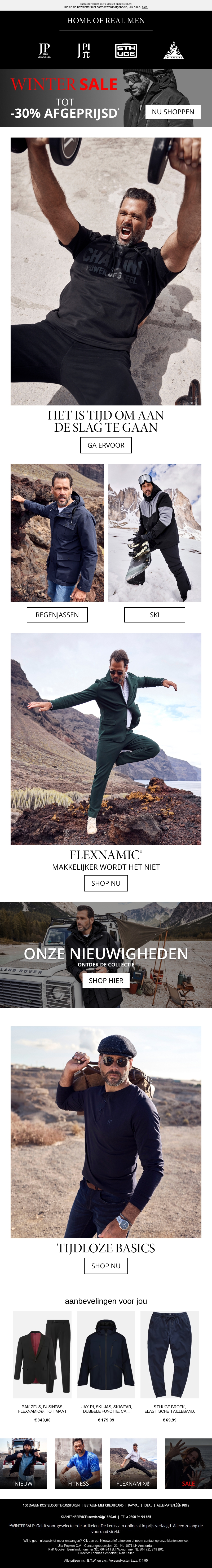 Beleef de ultieme winterstijl met Home of Real Men. Profiteer van de indrukwekkende Winter Sale met kortingen tot 30%. Van regenjassen tot ski-uitrusting, alles is afgeprijsd. Maak jouw garderobe compleet met onze tijdloze basics en nieuwste collecties. Shop nu en ervaar de kwaliteit.
