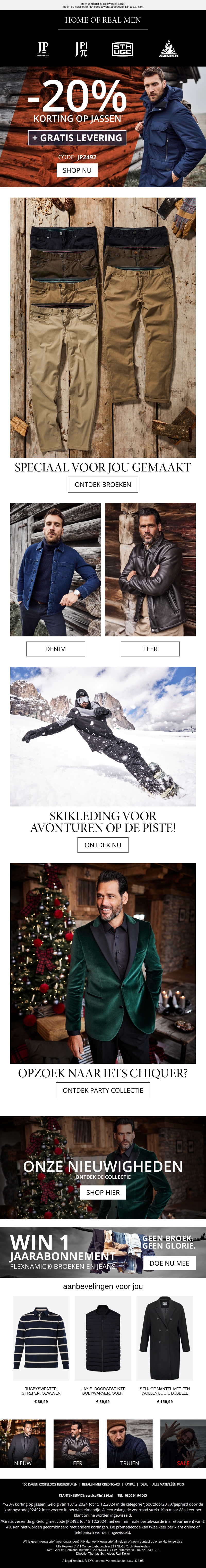 Gratis verzending + 20% korting op jassen en mantels