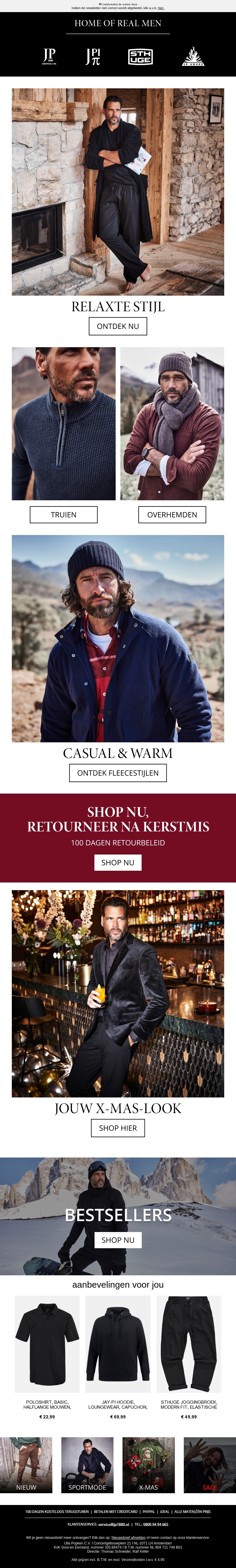 Verwen jezelf deze winter met onze nieuwste homewear collecties. Van relaxte stijlen tot casual en warme looks, we hebben alles wat je nodig hebt om comfortabel en modieus te blijven. Ontdek onze truien en overhemden en bereid je voor op het koude seizoen. Mis de kans niet om nu te shoppen en profiteer van 100 dagen retourbeleid. Vergeet niet je perfecte X-mas-look samen te stellen!