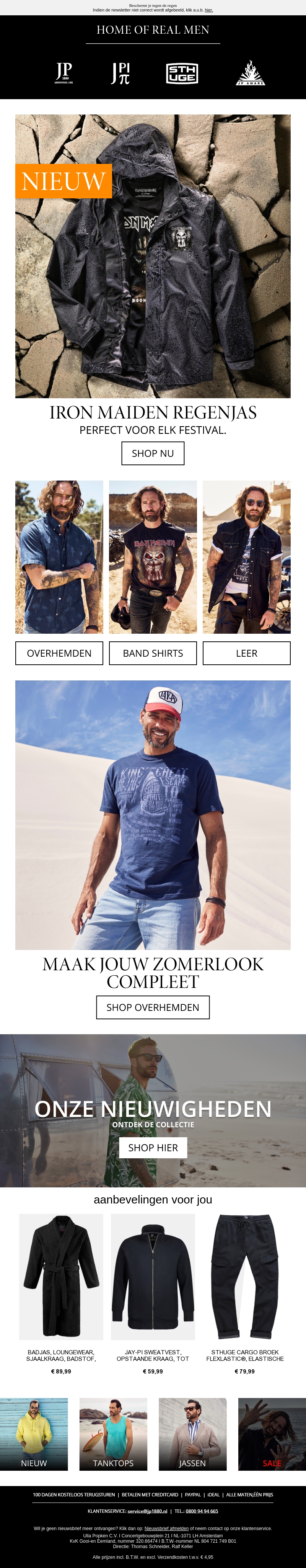 Bekijk onze nieuwste toevoeging: de Iron Maiden regenjas, perfect voor elk festival! Ontdek daarnaast de zomercollectie met stijlvolle overhemden, band shirts en leren items. Maak je look compleet en shop de nieuwste trends.