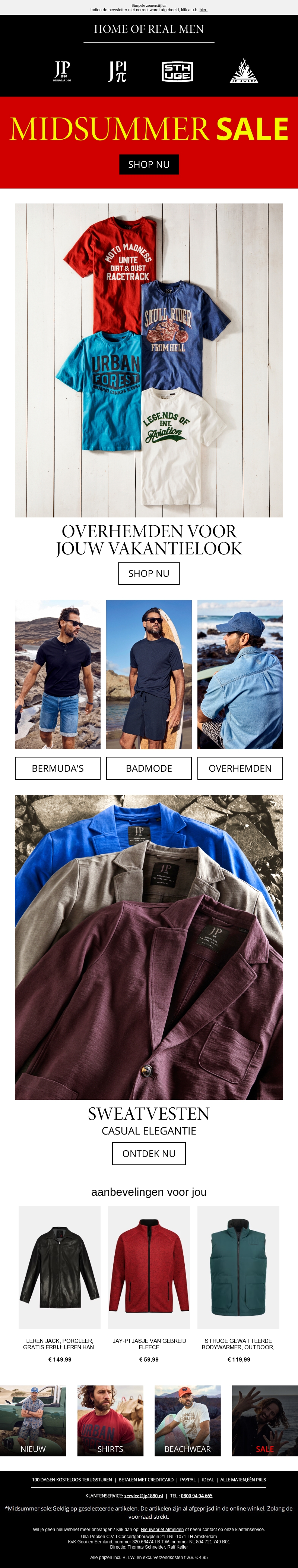 De Midsummer Sale is hier! Ontdek de nieuwste overhemden voor je vakantie-look. Profiteer van geweldige kortingen op bermuda's, badmode en meer. Mis het niet!