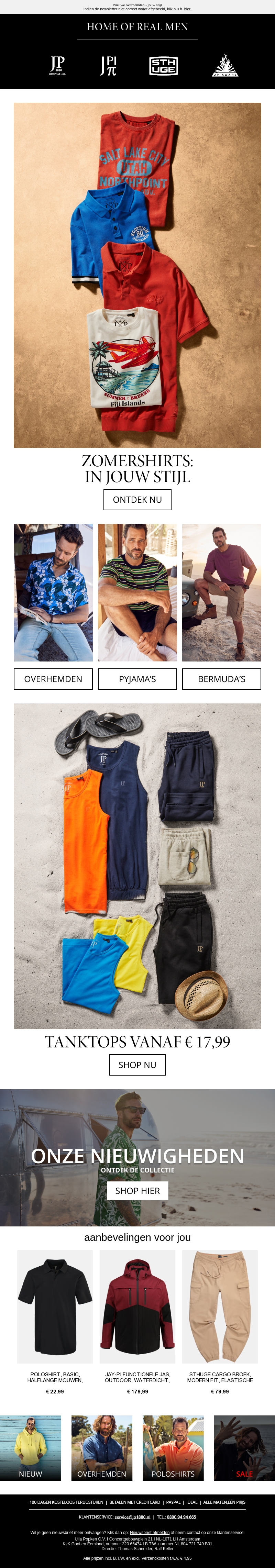 De nieuwste zomercollectie is gearriveerd! Verken een breed scala aan stijlvolle shirts, tanktops en comfortabele kledingstukken voor heren. Zorg deze zomer voor een frisse, modieuze look met onze zorgvuldig geselecteerde items. Mis deze kans niet om je garderobe te vernieuwen.