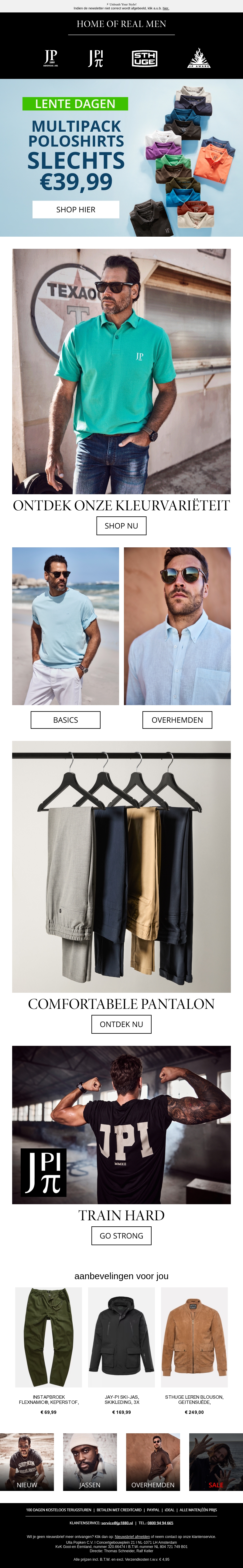 Geniet van de lente met onze speciale aanbieding: multipack poloshirts voor slechts €39,99. Onmisbare basics in diverse kleuren voor elke gelegenheid. Combineer met onze comfortabele pantalons of overhemden. Perfect voor zowel casual als zakelijke looks. Tijdelijk beschikbaar, dus sla snel je slag!