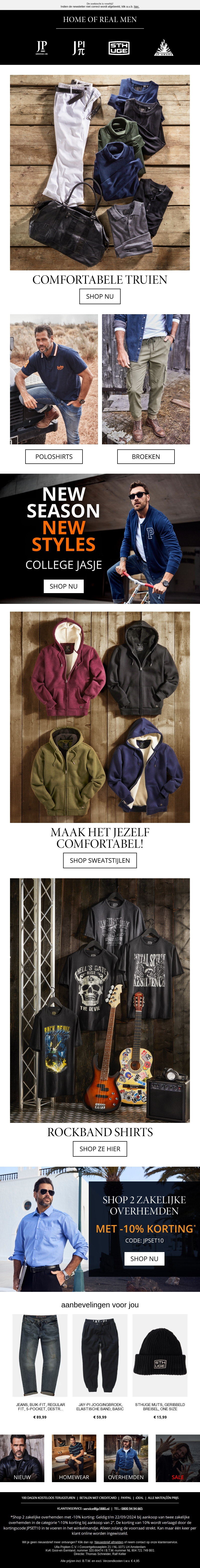 Ben je op zoek naar truien voor het najaar? Ontdek onze collectie comfortabele en stijlvolle truien, poloshirts, broeken, en sweatstijlen. Maak het jezelf comfortabel met de nieuwste mode en profiteer van geweldige kortingen.