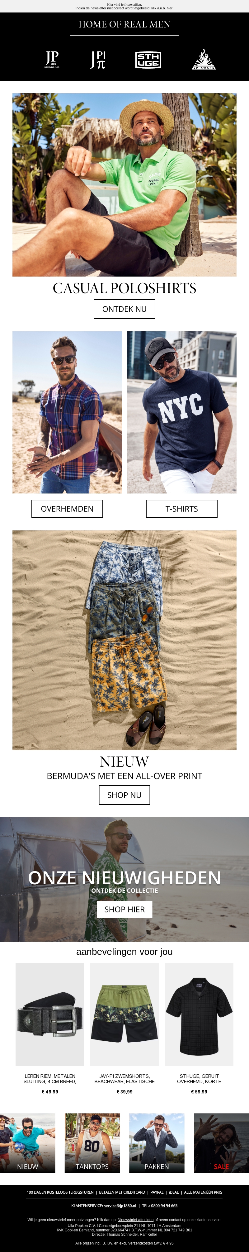 De nieuwste collectie frisse poloshirts is hier! Ontdek casual poloshirts, kleurrijke overhemden, en comfortabele T-shirts voor elke gelegenheid. Mis ook de nieuwe bermuda's met all-over prints niet. Shop nu en fris je zomergarderobe op met deze must-haves.