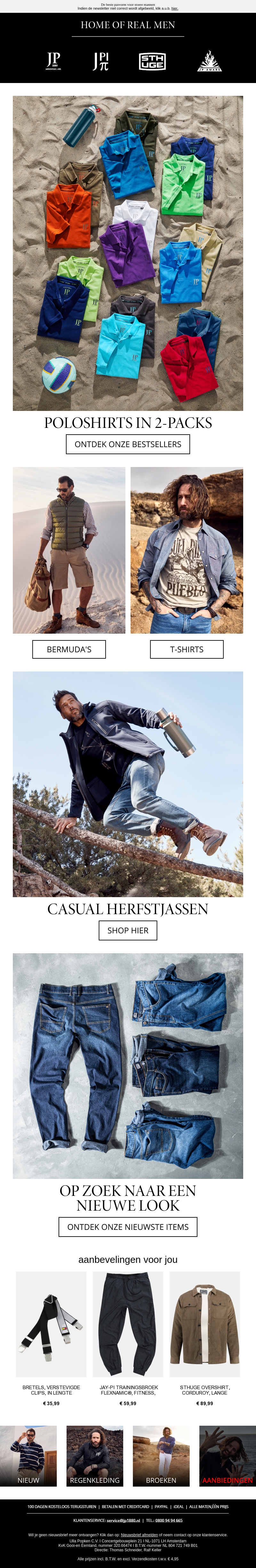 Blijf modieus en comfortabel in de nazomer met onze fantastische collectie. Van 2-pack poloshirts en bermuda’s tot casual herfstjassen. Ontdek ook onze nieuwste items voor een geheel nieuwe look.