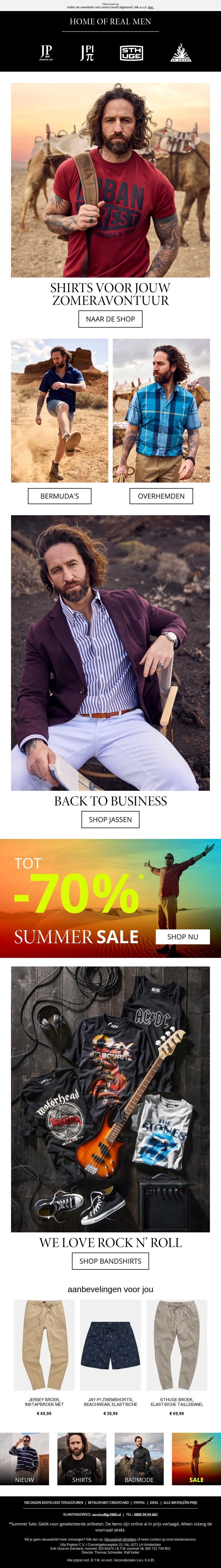 Bereid je voor op de zomer met onze stoere shirts voor jouw zomeravontuur. Ontdek een ruime selectie van bermuda's, overhemden en stijlvolle jassen. Geniet van kortingen tot 70% tijdens onze Summer Sale. Of je nu houdt van casual of rock-'n-roll stijlen, we hebben iets voor jou. Mis het niet en shop nu!