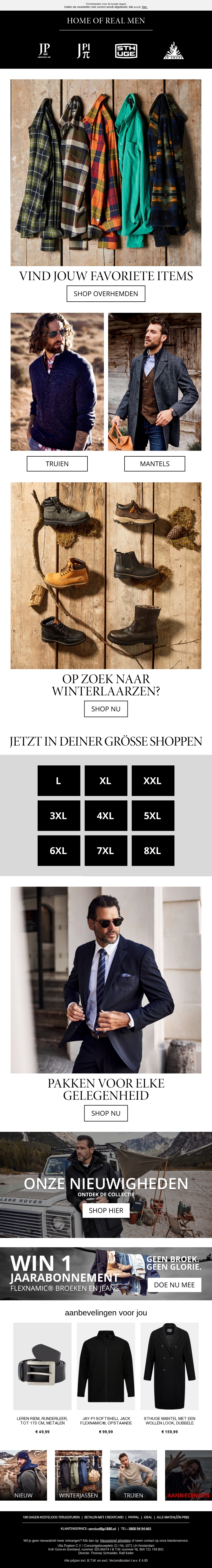 Deze nieuwsbrief presenteert een aanbod van tijdloze overhemden en andere stijlvolle herenkleding. Ontdek een breed scala aan maten en stijlen die perfect passen bij elke gelegenheid. Profiteer van exclusieve deals en updates over de nieuwste collectie. Blijf warm en modieus met onze selectie truien en laarzen. Mis onze speciale wedstrijd niet voor een gratis jaarabonnement. Winkel vandaag nog voor unieke stukken die je garderobe compleet maken.