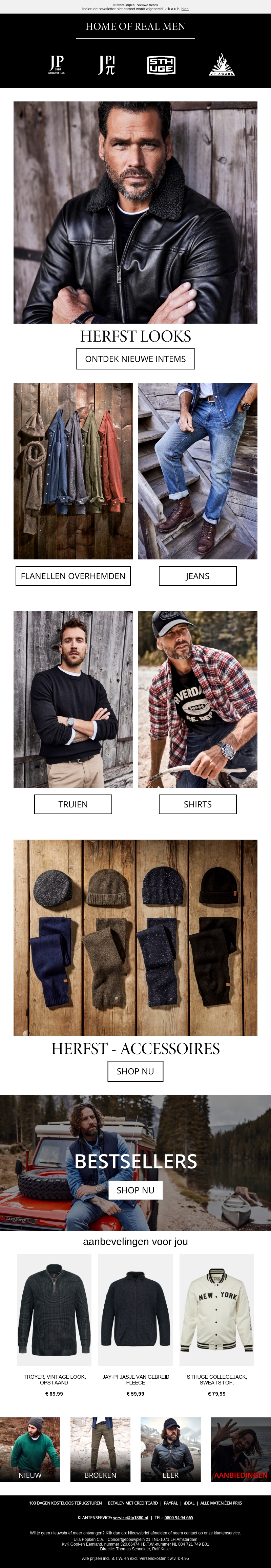 Ontdek de nieuwste herfstmode met onze uitgebreide collectie flanellen overhemden, jeans, truien en accessoires. Blijf warm en stijlvol met onze topkeuzes. Mis de bestsellers en exclusieve aanbiedingen niet!