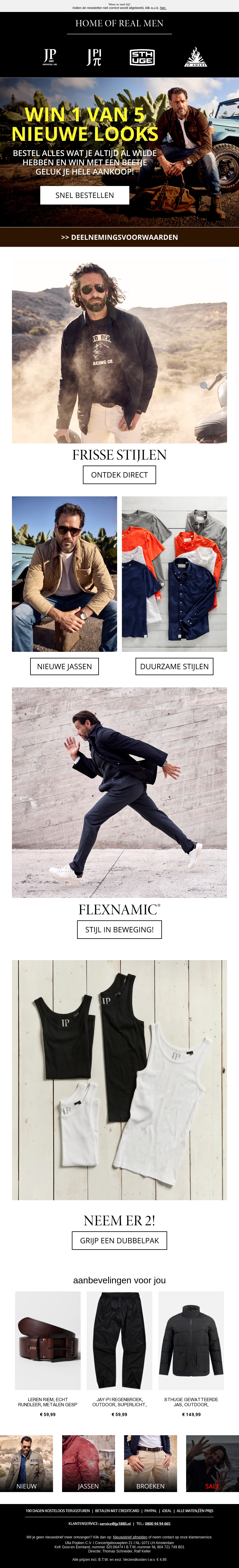 Ontvang de kans om één van de vijf nieuwe looks te winnen. Ontdek frisse stijlen, van jassen tot duurzame kleding, en ervaar de kwaliteit van Flexnamic. Mis de kans niet om jouw ideale outfits aan te schaffen.