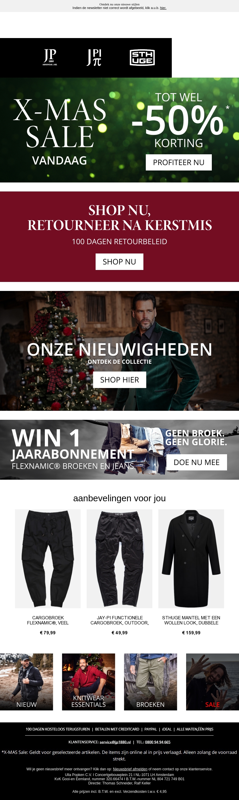 Beleef de feestdagen in stijl met onze X-MAS Sale! Bespaar tot wel 50% op een breed scala aan modeartikelen. Ontdek onze nieuwste collecties en geniet van een flexibel retourbeleid tot 100 dagen na Kerstmis. Mis ook de kans niet om een jaarabonnement op Flexnamic® broeken te winnen. Shop nu en maak deze kerst onvergetelijk.