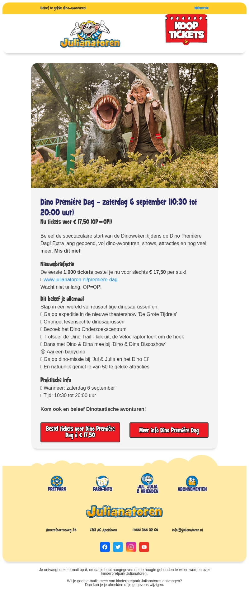 🦖 € 17,50 p.p.: Dino Première Dag 6 september