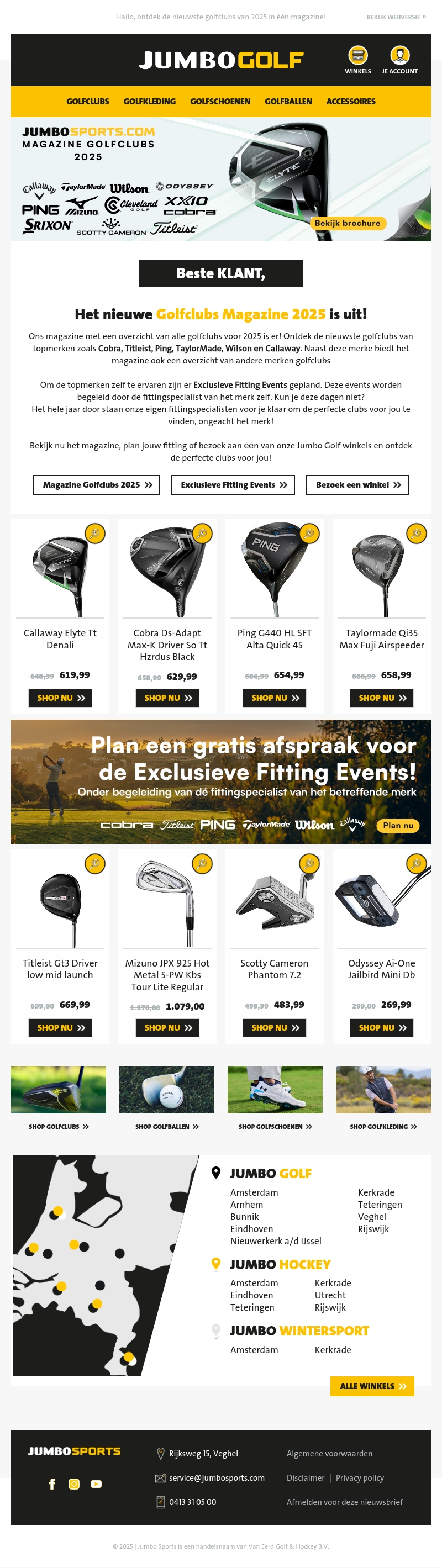 Het nieuwe Golfclubs Magazine 2025 is nu beschikbaar! Ontdek de nieuwste collectie golfclubs van topmerken zoals Cobra, Titleist en Ping. Profiteer van onze exclusieve fitting events, begeleid door ervaren specialisten. Mis deze kans niet om jouw ideale golfuitrusting te vinden!