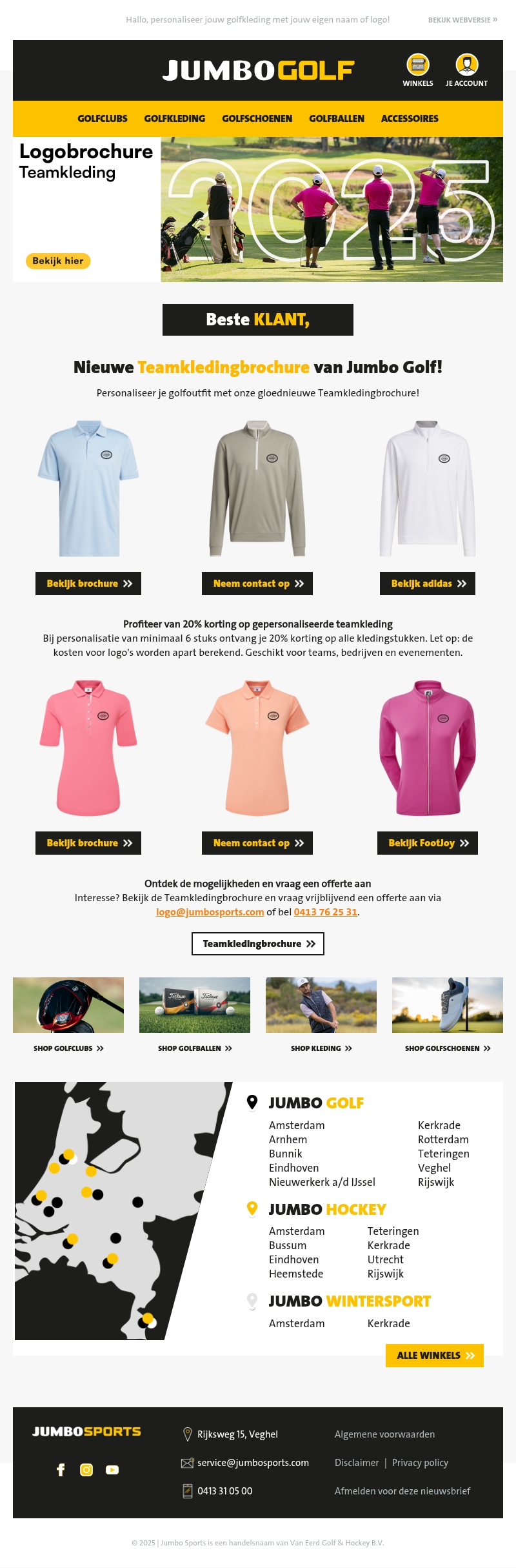 Nieuwe Teamkledingbrochure van Jumbo Golf!