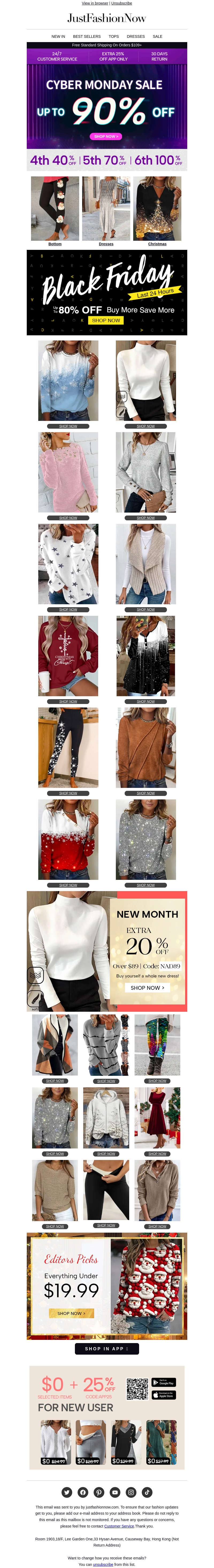 Bezoek onze uitverkoop met kortingen tot 90%! Het is je laatste kans om te profiteren van ongelofelijke deals op kleding en accessoires. Grijp je kans om je garderobe te vernieuwen met deze geweldige Black Friday en Cyber Monday aanbiedingen. Nieuwe maand, nieuwe stijl met extra 20% korting bij aankoop boven 109. Shop nu!