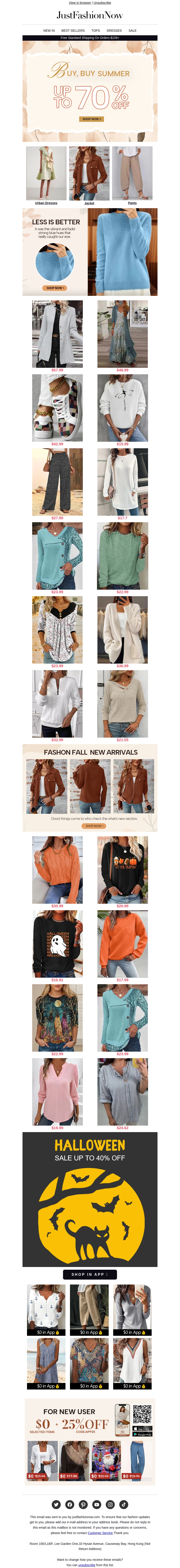 Deze maandag biedt JustFashionNow kortingen tot 60% op een breed scala aan mode. Van zomerjurken tot herfsttruien, er is voor ieder wat wils. Mis ook de speciale Halloween aanbiedingen niet. Vergeet niet de nieuwkomers korting van 25% te gebruiken.