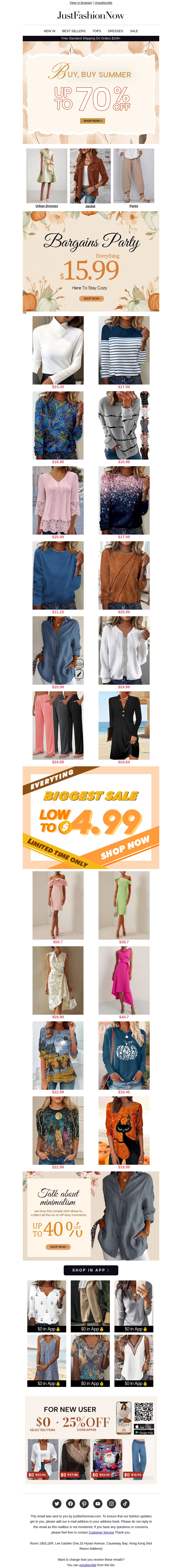 Shop de nieuwste modetrends bij JustFashionNow met spectaculaire kortingen. Ontvang tot 60% korting op een breed scala aan kledingstukken. Exclusieve aanbiedingen voor nieuwe gebruikers en speciale deals zijn beschikbaar. Profiteer vandaag nog van deze geweldige kortingen en vernieuw je garderobe met stijl.