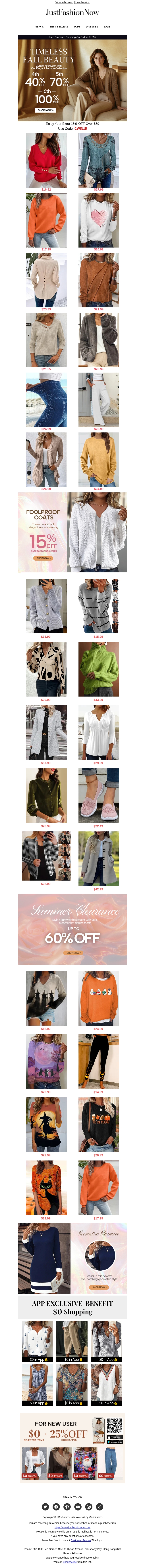 Mis deze prachtige herfstuitverkoop niet met kortingen tot 70%! Ontdek een breed scala aan kledingstukken zoals truien, jassen en meer. Deze aanbiedingen zijn bijna op, dus sla snel je slag. Profiteer ook van een extra 15% korting op foolproof jassen. Nieuwe gebruikers ontvangen $25 korting op hun eerste bestelling.