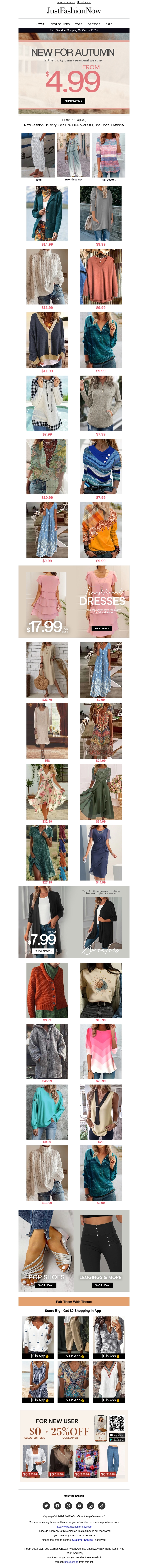 Verfris je garderobe met onze nieuwste herfstcollectie. Vind trendy tops, jurken en meer, allemaal vanaf een ongelooflijke prijs van €4,99. Mis deze geweldige deals niet en blijf modieus en comfortabel dit seizoen.