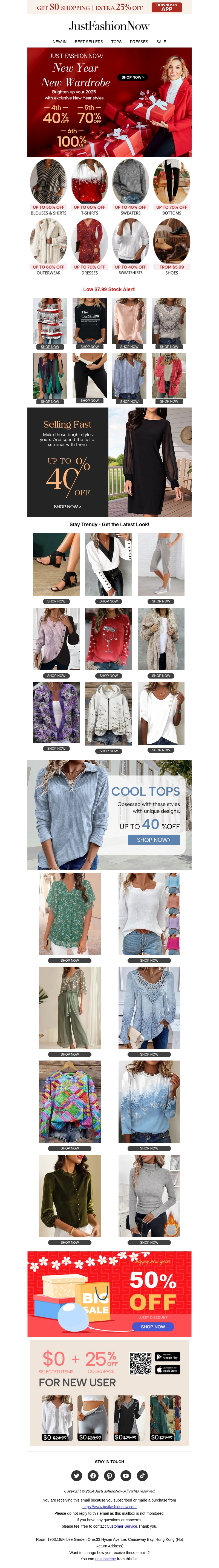 Ervaar de magie van JustFashionNow’s Nieuwjaar Uitverkoop met kortingen tot 70%. Ontdek modieuze jurken, trendy tops en stijlvolle schoenen. Shop nu en vul je garderobe aan met de nieuwste trends tegen geweldige prijzen.