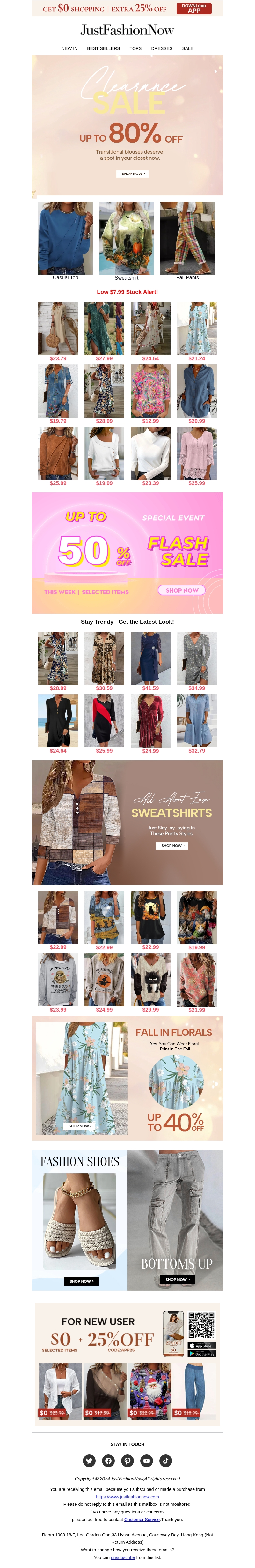 Profiteer dit weekend van enorme kortingen tot wel 80% op de nieuwste modetoppers bij JustFashionNow. Ontdek trendy tops, stijlvolle jurken en comfortabele broeken tegen ongelooflijke prijzen. Vergeet niet onze speciale flash sale met tot 50% korting op geselecteerde items. Gebruik de code APP25 voor extra 25% korting op je aankoop via de app!