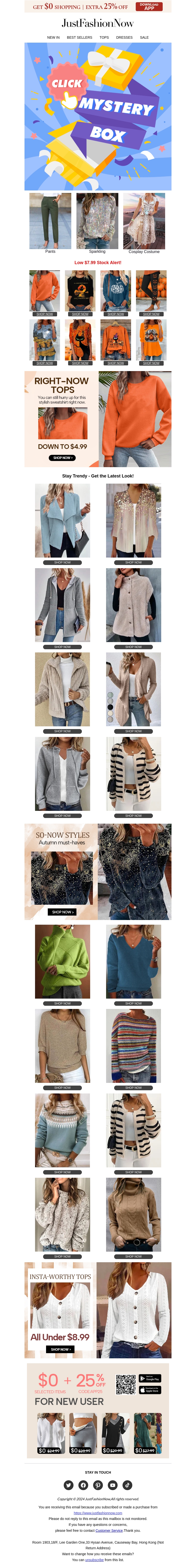 Verken de nieuwste modetrends met onze mystery box-aanbieding. Ontdek verleidelijke kortingen op broeken, truien en jurken voor dames. Profiteer van presenteren looks voor elke gelegenheid zonder de bank te breken. Onze collectie biedt veelzijdige stijlen van casual tot chic. Bezoek snel en verzeker jezelf van de beste deals.