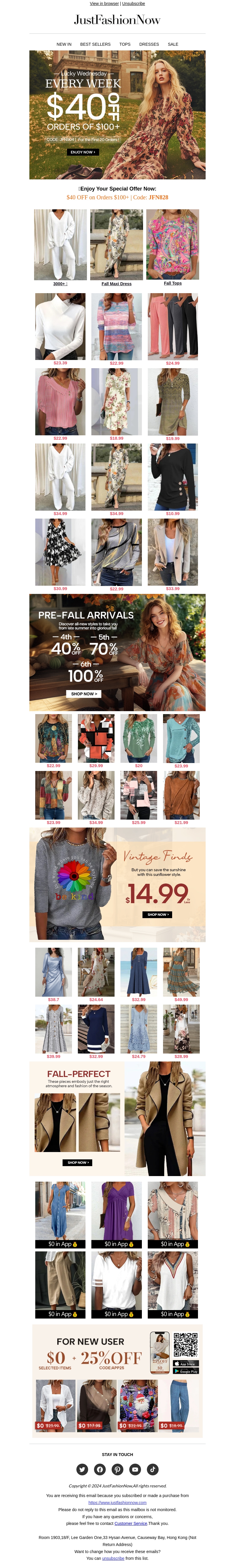 Bekijk de nieuwste collectie bij JustFashionNow met geweldige aanbiedingen. Ontvang $40 korting op bestellingen boven de $100. Ontdek stijlvolle items van tops tot jurken. Shop nu voor de beste deals en vul je garderobe aan met trendy kledingstukken.