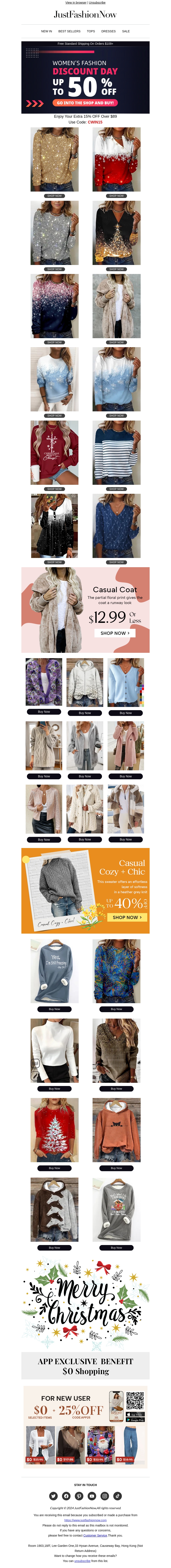 Mis deze geweldige kans niet om stijlvolle winterbuitenkleding te scoren. Geniet van kortingen tot 50% op diverse modeartikelen. Dit is het moment om je garderobe aan te vullen met warme en trendy stukken. Ontvang extra voordelen bij uw eerste aankoop. Bezoek nu de winkel en ontdek de nieuwste mode.