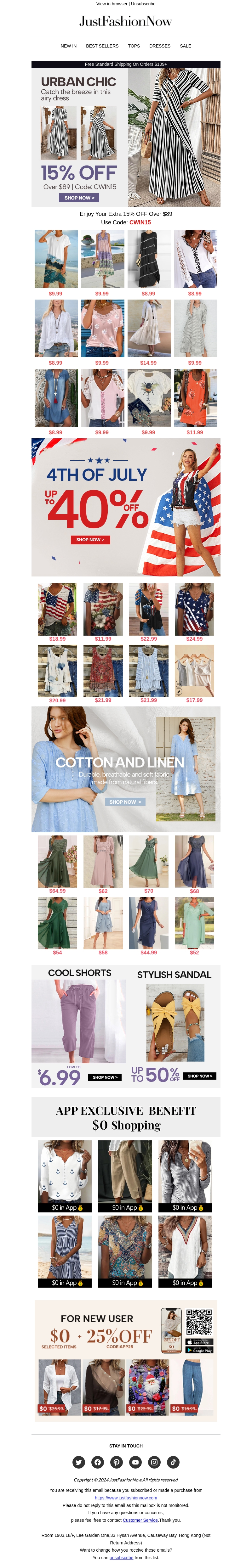Ontvang tot 40% korting bij JustFashionNow's zomeraanbiedingen! Beleef een streepje voor met onze urbano chique en katoenen linnen collecties. Mis onze exclusieve app-deals en nieuwe gebruikerskortingen niet. Gebruik de code CWIN15 voor extra voordeel.