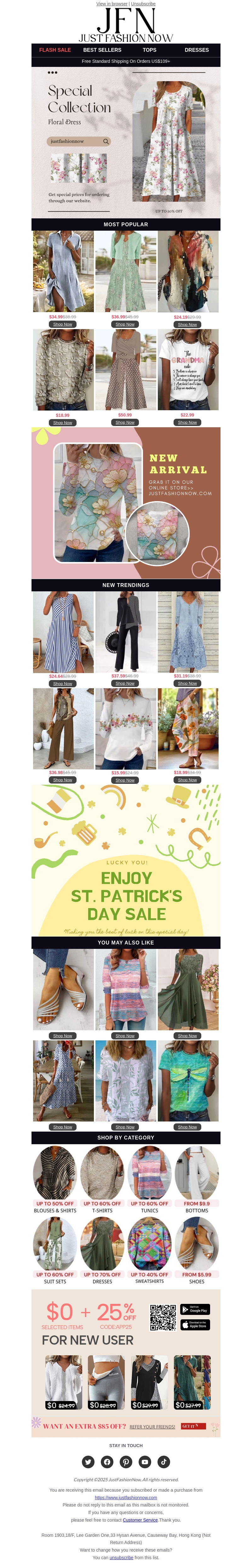 Verken de nieuwste collecties van Just Fashion Now. Ontdek prachtige jurken, trendy tops en meer met speciale kortingen. Mis de unieke nieuwkomers niet en geniet van de St. Patrick's Day Sale met geweldige aanbiedingen. Perfect voor modebewuste shoppers!