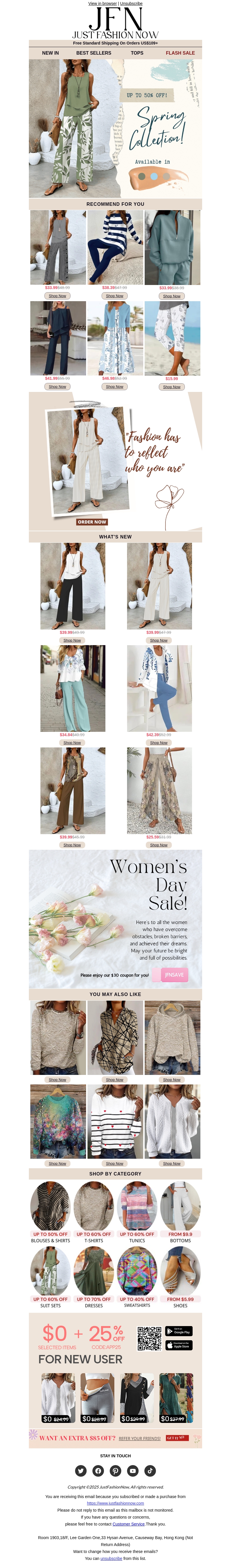 Haal je stijlvolle garderobe aan met onze nieuwste voorjaarscollectie! Ontdek tot 50% korting op een brede selectie kledingstukken. Van casual tot elegant, er is voor ieder wat wils. Mis ook de speciale Women's Day Sale niet voor extra verrassingen. Shop nu en laat je inspireren door onze modekeuzes!