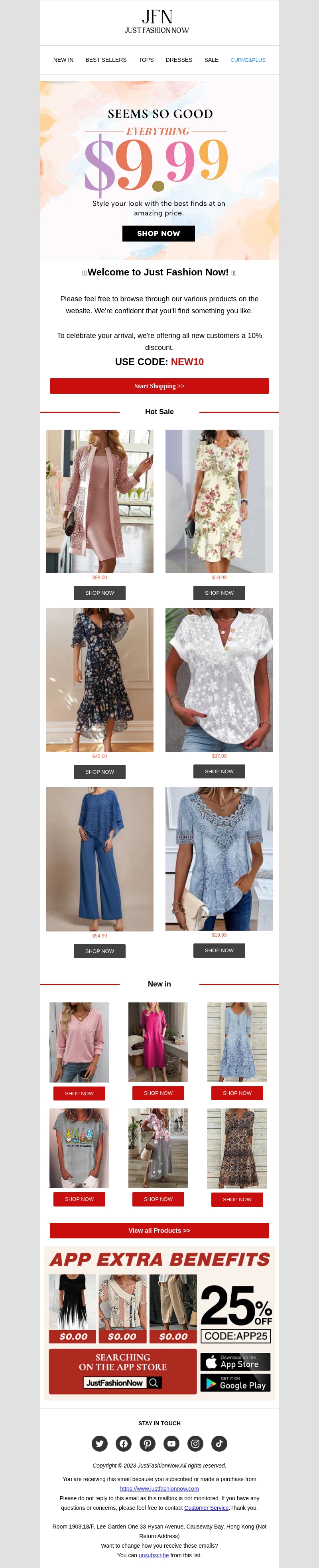 Welkom bij Just Fashion Now! Als nieuwe klant kunt u genieten van een speciale welkomstkorting van 10%. Bekijk onze laatste aanbiedingen en ontdek de nieuwste modetrends voor slechts $9.99. Mis deze geweldige deal niet!