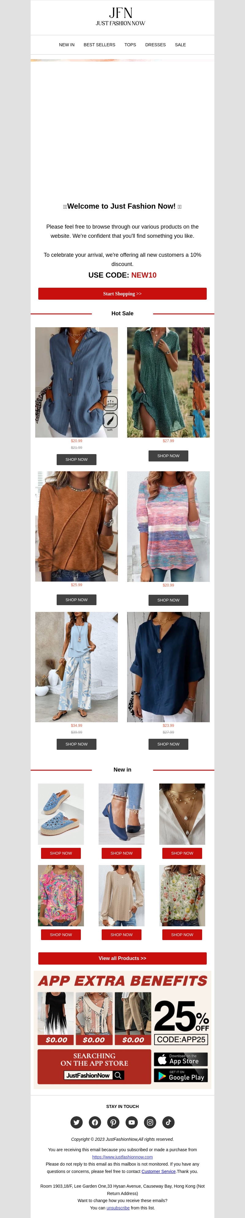 Welkom bij Just Fashion Now! We zijn verheugd om je te verwelkomen en bieden je 10% korting op je eerste bestelling. Ontdek onze nieuwe collectie, bestsellers en hete aanbiedingen. Je zult zeker iets vinden wat je leuk vindt. Gebruik de code NEW10 nu om te profiteren van deze aanbieding!