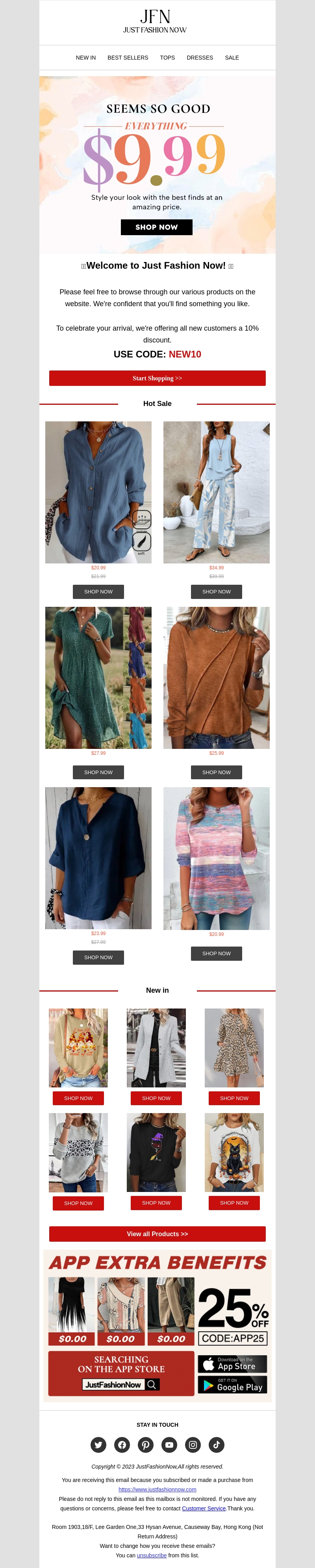 Welkom bij Just Fashion Now! Blader door onze nieuwste mode-items. We bieden 10% korting voor nieuwe klanten met de code NEW10. Profiteer ook van extra voordelen in onze app.