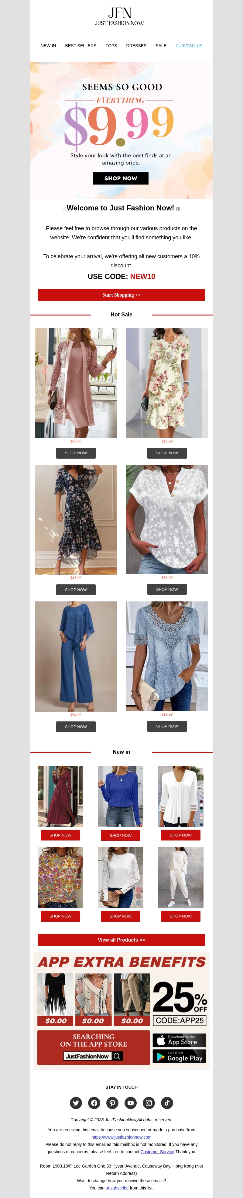 Welkom bij Just Fashion Now! Als nieuwe klant krijg je 10% korting op je eerste aankoop met de kortingscode NEW10. Bekijk onze hot sale items met prijzen vanaf $9.99 en ontdek de nieuwste collectie. Mis ook onze app voordelen niet met 25% korting op je eerste app-aankoop. Shop nu de nieuwste trends en bespaar meer!