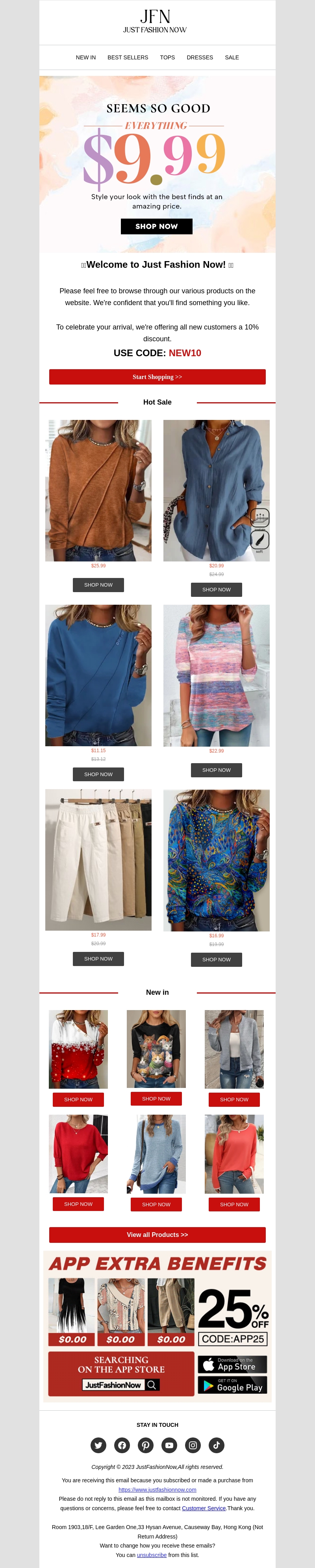 Welkom bij Just Fashion Now! Als nieuwe klant kunt u genieten van 10% korting op uw eerste aankoop. Ontdek onze nieuwste modecollecties tegen geweldige prijzen. Bekijk snel onze 'Hot Sale' en 'New In' secties voor de beste deals. Mis deze kans niet om uw stijl te verbeteren met onze topkwaliteit producten.