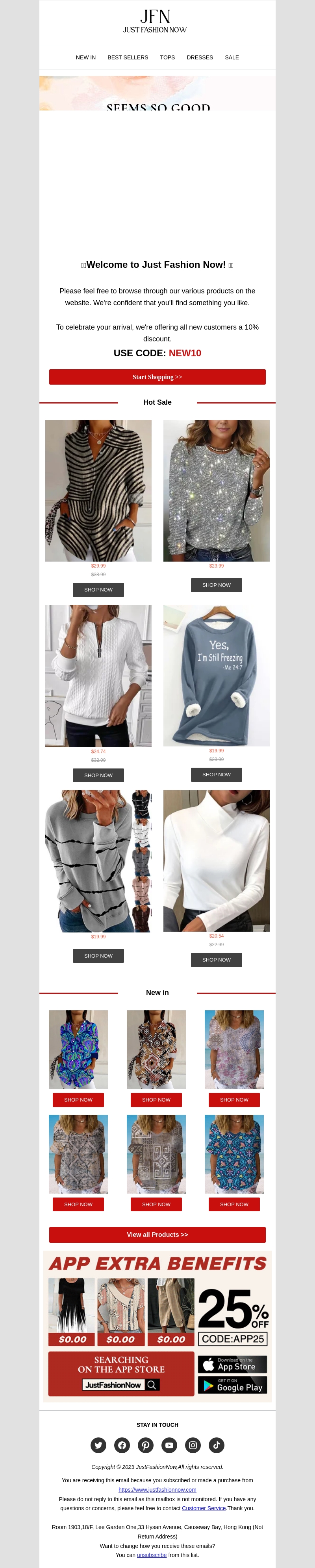 Ontdek de nieuwste mode bij Just Fashion Now. Om je te verwelkomen, bieden we nieuwe klanten een exclusieve korting van 10%. Bekijk onze hot sale en nieuwste collectie voor geweldige aanbiedingen. Shop vandaag nog en bespaar met de code NEW10.