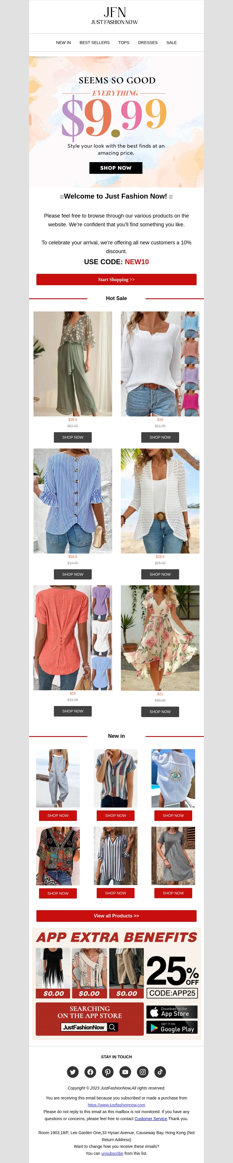 Welkom bij Just Fashion Now! Als nieuwe klant krijg je 10% korting op je eerste aankoop. Bekijk onze geweldige collectie, van de nieuwste trends tot tijdloze klassiekers. Mis deze kans niet om je garderobe te vernieuwen met onze fantastische aanbiedingen.