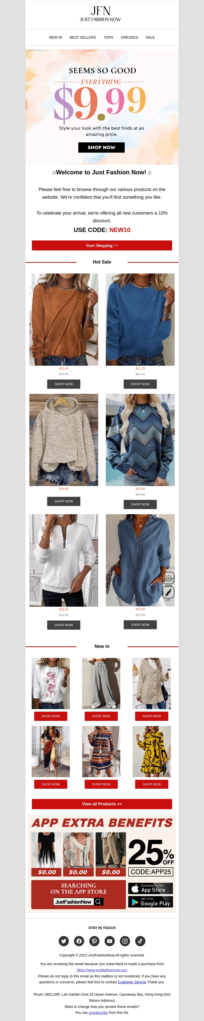 Welkom bij Just Fashion Now! We nodigen je uit om onze diverse collectie te bekijken. Geniet van een exclusieve 10% korting als nieuwe klant. Mis de 'Hot Sale' niet met trendy artikelen tegen gereduceerde prijzen. Ontdek ook de nieuwe collectie voor een frisse stijl. Benut deze kans om je mode te upgraden.