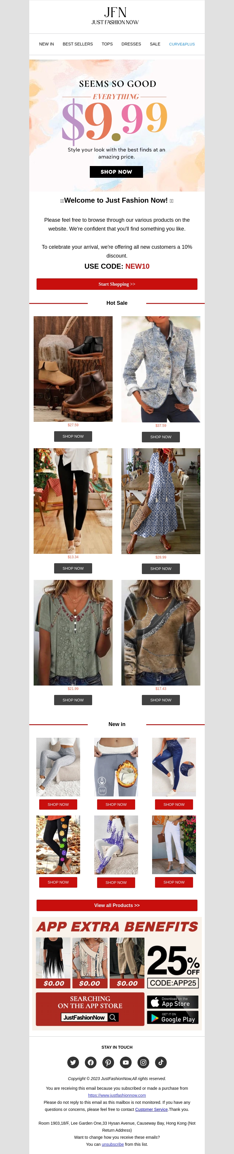 Welkom bij Just Fashion Now! Ontdek de laatste mode voor een geweldige prijs. Nieuwe klanten ontvangen een speciale korting van 10%. Bekijk onze populaire en nieuwe collecties die nu in de aanbieding zijn. Geniet van spannende kortingen en speciale app-voordelen. Begin vandaag met shoppen en verfris je stijl.
