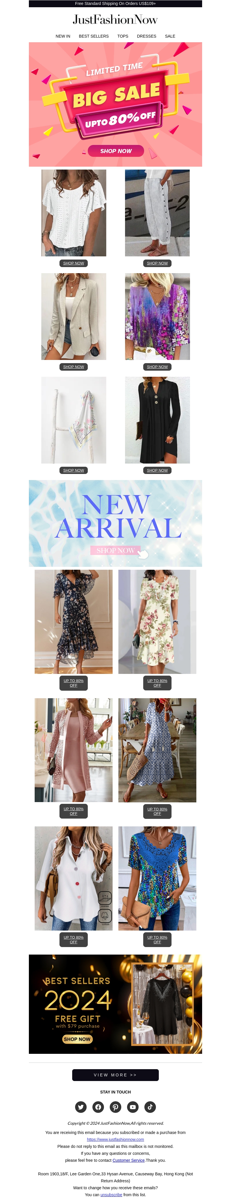 Mis de kans niet om je zomer garderobe aan te vullen met kortingen tot 80% bij JustFashionNow. Nieuwe aankomsten zijn ook beschikbaar. Profiteer van gratis verzending bij bestellingen boven de US$109. Pak je korting nu!