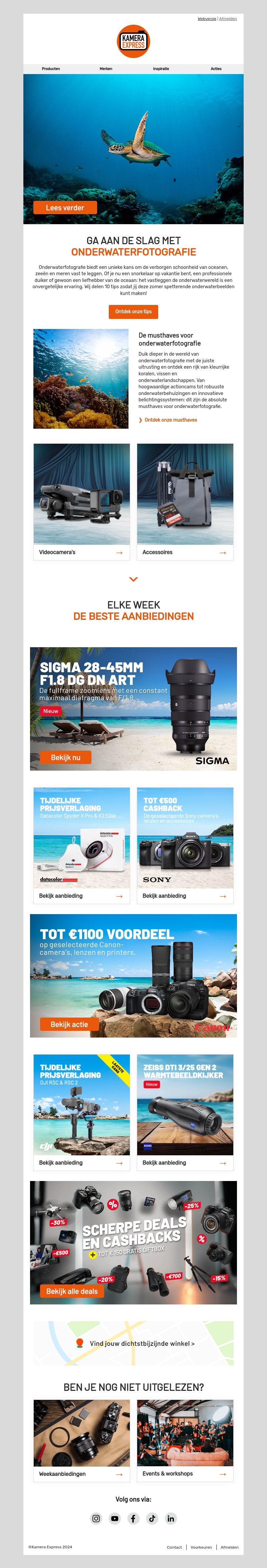 Ontdek de verborgen schoonheid van oceanen en zeeën met onderwaterfotografie. Leer over de juiste apparatuur en fototechnieken. Profiteer van scherpe deals en cashbacks op camera's en accessoires.