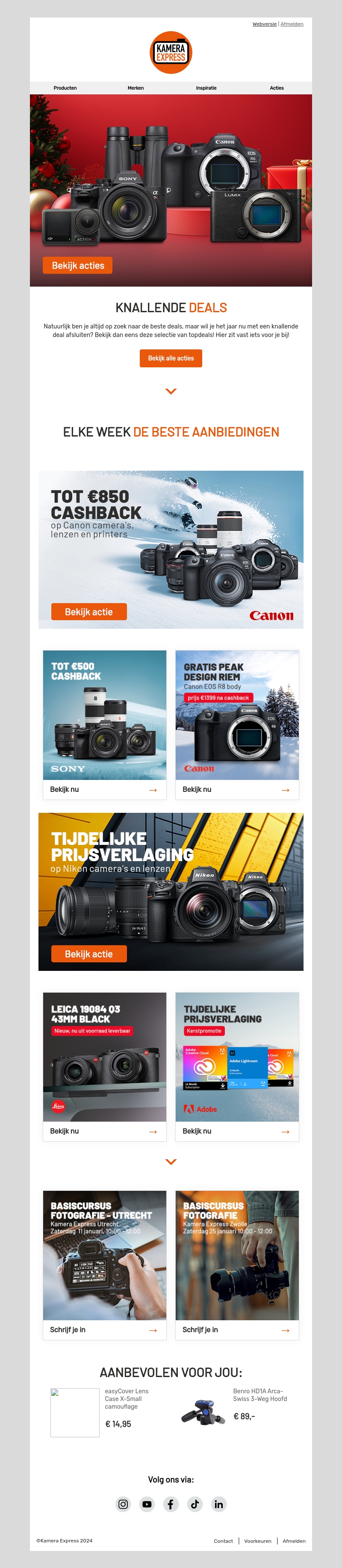 Profiteer van spectaculaire deals om het jaar goed af te sluiten. Kamera Express biedt nu kortingen op topmerken zoals Canon, Sony, en Nikon. Grijp de kans op cashback en prijsverlagingen. Ideaal voor zowel beginnende als ervaren fotografen. Mis deze unieke aanbiedingen niet voordat ze eindigen!